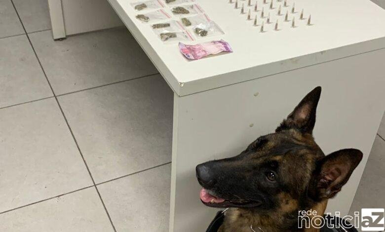 Com a ajuda do cão farejador K9 RED, os agentes localizaram uma sacola com uma grande quantidade de entorpecentes na mata próxima. Foram apreendidas 53 porções de crack, 45 de K2, 36 de cocaína, 26 de maconha e 5 de haxixe.