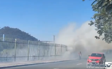 A densa fumaça prejudica a visibilidade dos motoristas que trafegam pela Avenida Ferroviários, exigindo atenção redobrada para evitar acidentes na área afetada.