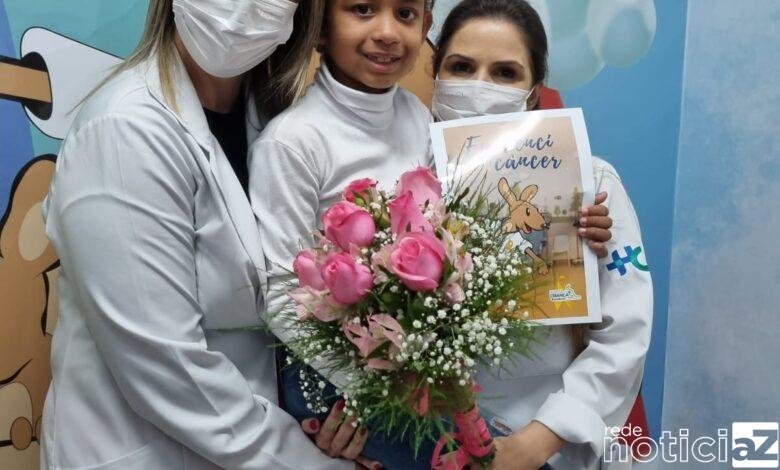 Ela iniciou seu tratamento no Grendacc em outubro de 2021, passou por quimioterapia, algumas internações e depois de dois anos e meio vai entrar na fase de acompanhamento – passando por consultas e exames periódicos.