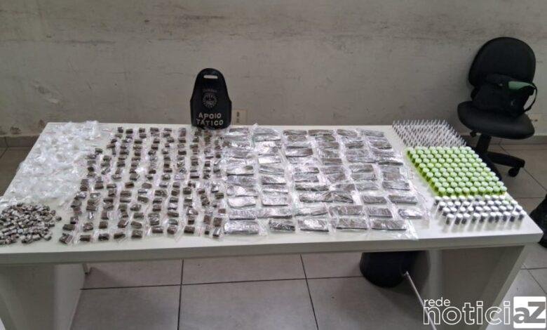 Ele foi conduzido até a Central de Flagrantes, onde foi preso em flagrante por Tráfico de Drogas.