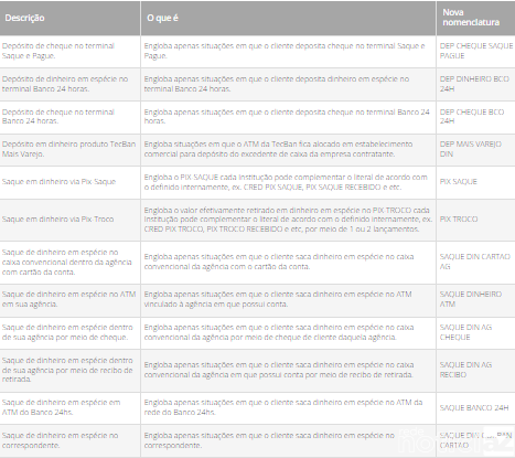 Para facilitar a identificação das operações, a Febraban informou que as descrições nos extratos serão mais claras. Por exemplo: