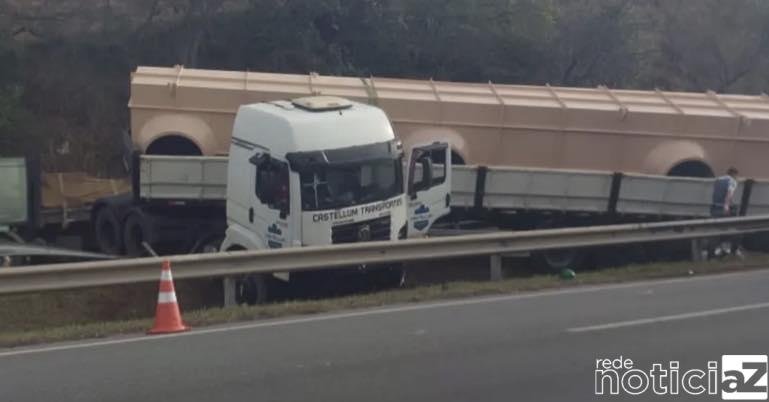Carreta tomba na rodovia Dom Pedro e gera congestionamento
