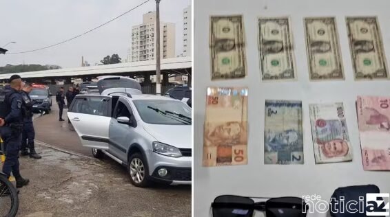 Sendo assim, ele tentou fugir mas foi alcançado pelas equipes da GCM. Foram apreendidos objetos além de cédulas de dólares.