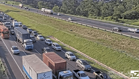 O engavetamento gerou um significativo congestionamento, que se estendeu por cerca de quatro quilômetros, afetando o fluxo de veículos na rodovia.