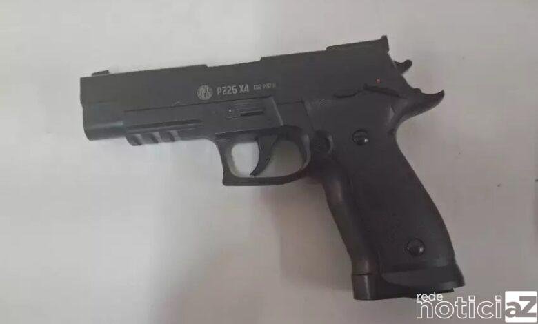 Sendo assim, os agentes foram atrás do suspeito, o abordando e o revistando. Logo foi encontrado um simulacro de arma.