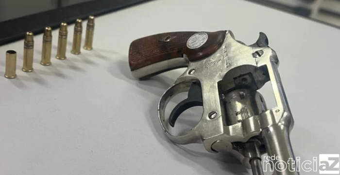 Ao chegar no local, os policiais encontraram um homem armado, que foi preso em flagrante. Com ele, foi apreendido um revólver calibre .22 com uma munição deflagrada e cinco intactas.