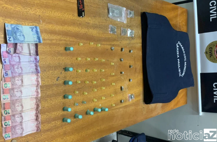 Uma sacola com porções de crack, cocaína, maconha e dinheiro em espécie foi apreendida pela Guarda Municipal de Várzea Paulista na noite de quarta-feira (04).
