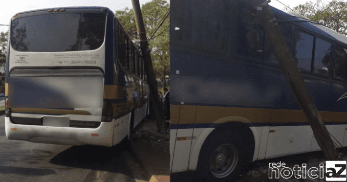 Um ônibus fretado colidiu com um poste de iluminação na Avenida Osmundo dos Santos Pellegrini, em Jundiaí. O acidente aconteceu nas proximidades do cemitério dos Ipês, quando o veículo perdeu o controle e saiu da pista, parando apenas na calçada, na manhã desta terça-feira (1°).