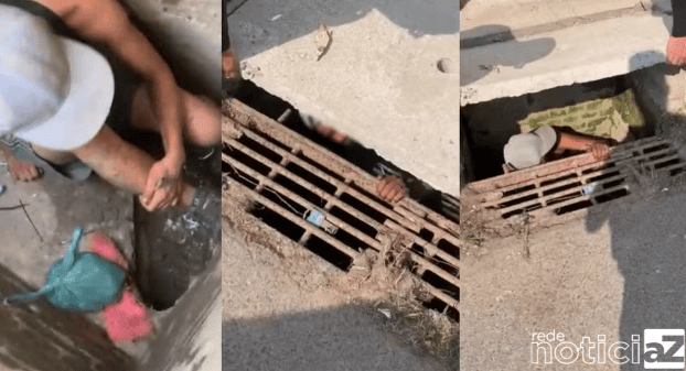 VÍDEO — Mulher é presa ao ser encontrada com drogas dentro de bueiro