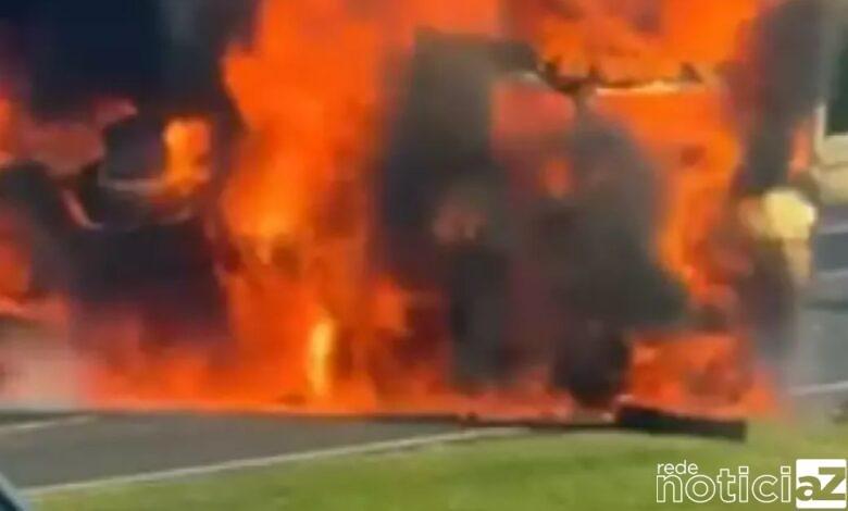 Um caminhão tombou e foi consumido por um incêndio após explodir, em uma rodovia no sentido Capital-Interior (Norte), na tarde de quarta-feira (20). Apesar do susto, não houve vítimas.