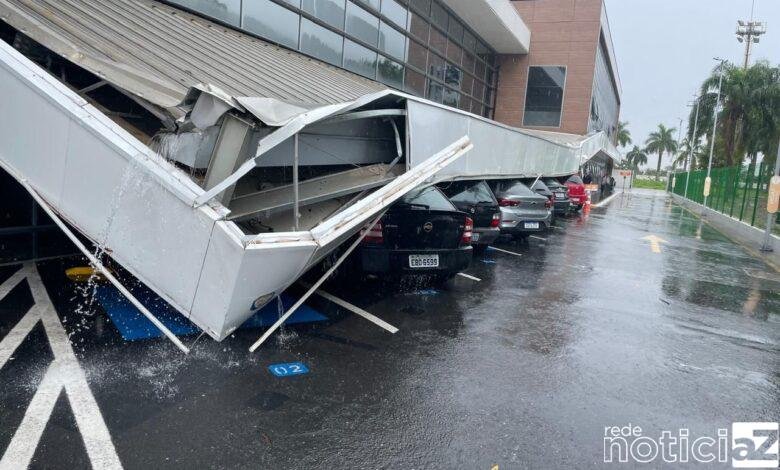 VÍDEO – Estrutura cai em cima de carros em supermercado