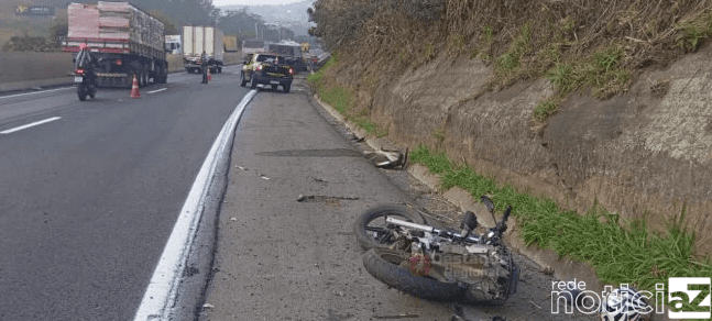 Com o impacto, ele foi lançado metros à frente. Um caminhão passou sobre a moto, mas não atingiu o motociclista, que sofreu apenas ferimentos leves. Uma viatura do Departamento de Trânsito que passava pelo local ajudou a sinalizar a área e acionou a polícia e o resgate.