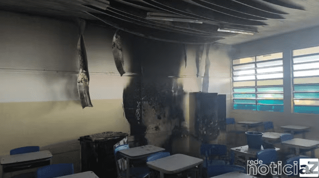 Segundo informações, o fogo teria começado em algum equipamento elétrico. As chamas destruíram uma estante com notebooks e livros, espalharam-se pelas carteiras e danificaram parte do teto.