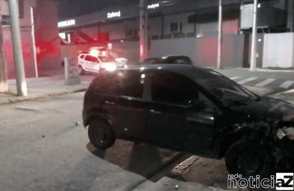 Após o impacto, o veículo colidiu contra um muro. O Corpo de Bombeiros foi acionado, mas a vítima fugiu antes de receber atendimento médico.