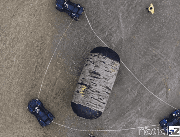 Estrutura gigante foi identificada como uma boia marítima, mas sua origem e rota até o litoral ainda são um enigma para as autoridades.