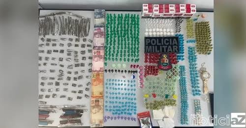 Polícia encontrou grande quantidade de entorpecentes após denúncia de gerente; adolescente que estava com o suspeito foi encaminhada ao abrigo