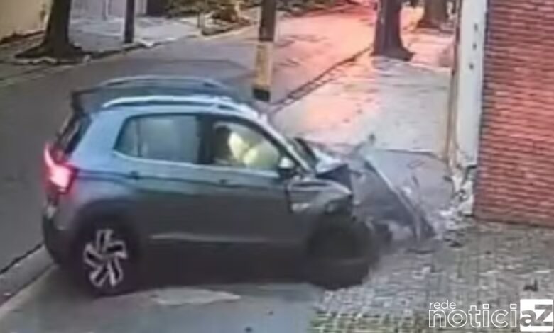 Imagens de câmeras de segurança mostram o veículo invadindo a calçada e atingindo a quina do estabelecimento. O vídeo também indica que havia outros ocupantes dentro do automóvel no momento do acidente.