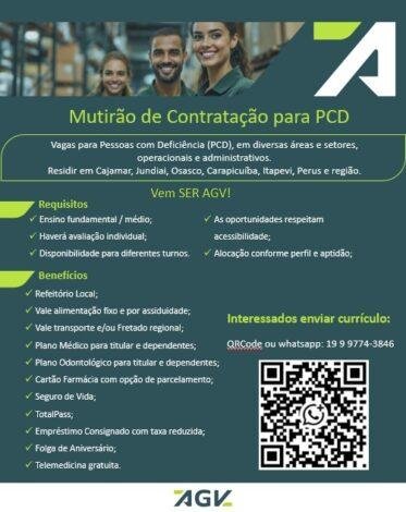 A AGV Logística está promovendo um mutirão de emprego em Cajamar, na Grande São Paulo, com diversas oportunidades nas áreas operacionais e administrativas, incluindo um processo seletivo exclusivo para Pessoas com Deficiência (PCD).