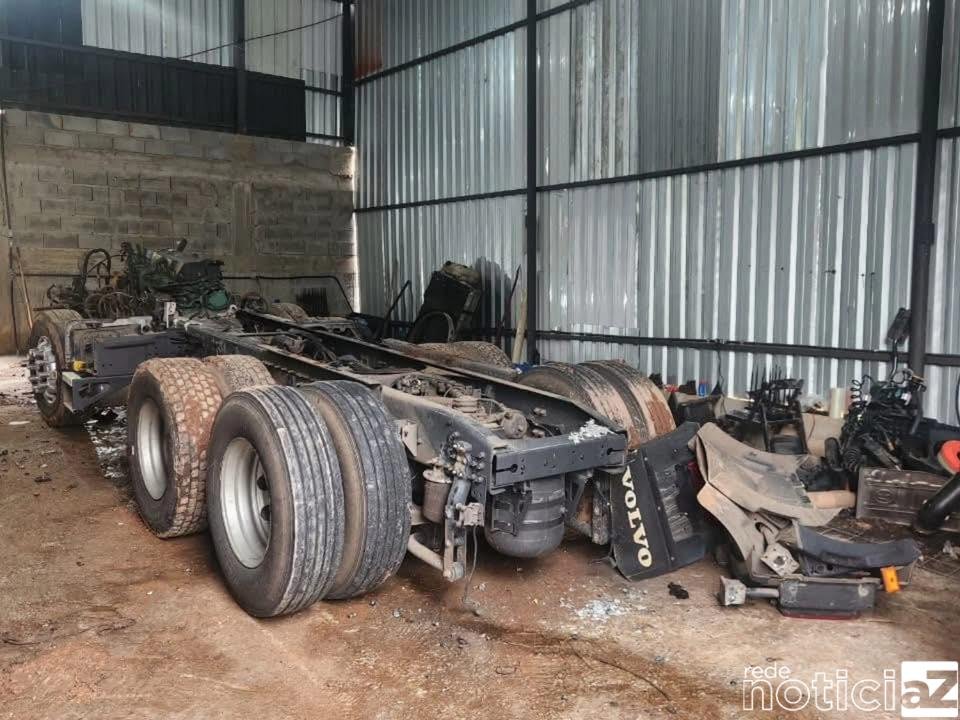 Dentro da propriedade, os agentes encontraram um veículo de carga sendo desmontado em um galpão, além de aparelhos jammer em funcionamento, ferramentas e dois carros que, segundo a polícia, eram utilizados para dar suporte às ações criminosas.