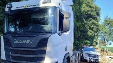 Caminhão interdita a Rodovia Edgard Máximo Zambotto na tarde desta quinta-feira