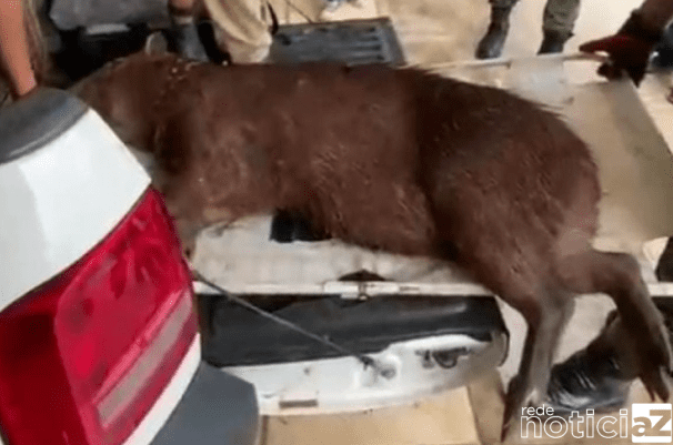 Segundo relato da moradora do imóvel, que preferiu não se identificar, a capivara foi vista pela primeira vez na região na noite de domingo (1º). No dia seguinte, o animal retornou ao quintal da residência, se assustou com os cães da casa e acabou se refugiando no espaço onde fica o motor da piscina, ficando preso no local.