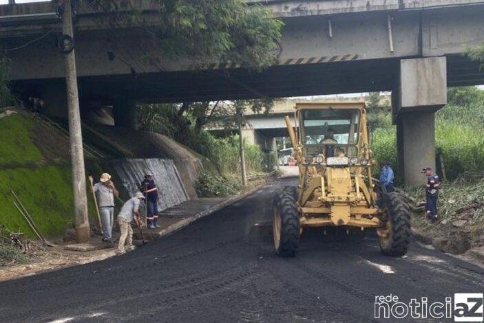 Entre as ações realizadas estão a aplicação de nova capa asfáltica para recuperação do pavimento, a desobstrução de canaletas e a limpeza das caixas de drenagem.