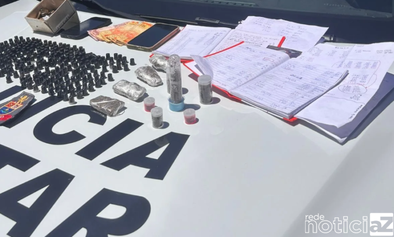 Ao todo, foram apreendidos 276 pedras de crack, 10 porções de maconha, R$ 463,85 em dinheiro, dois celulares e dois cadernos com registros ligados à atividade criminosa.