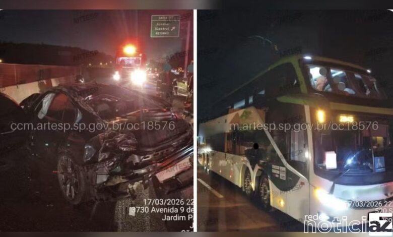 Duas pessoas ficaram gravemente feridas após um acidente envolvendo um carro e um ônibus na noite de terça-feira, na Rodovia Anhanguera, em Jundiaí.