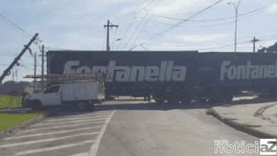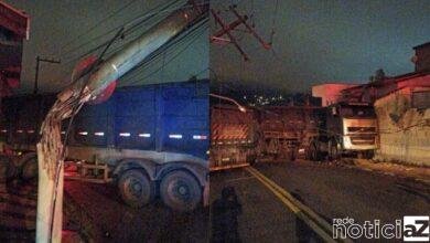 22 de janeiro de 20240Carreta derruba poste de energia de deixa bairro sem energia
