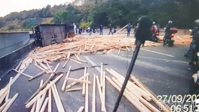 27 de setembro de 20210Caminhão tomba e carga de madeira fica espalhada na Via Anhanguera