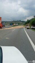 Caminhão cai e derrama diesel na alça de acesso da Bandeirantes