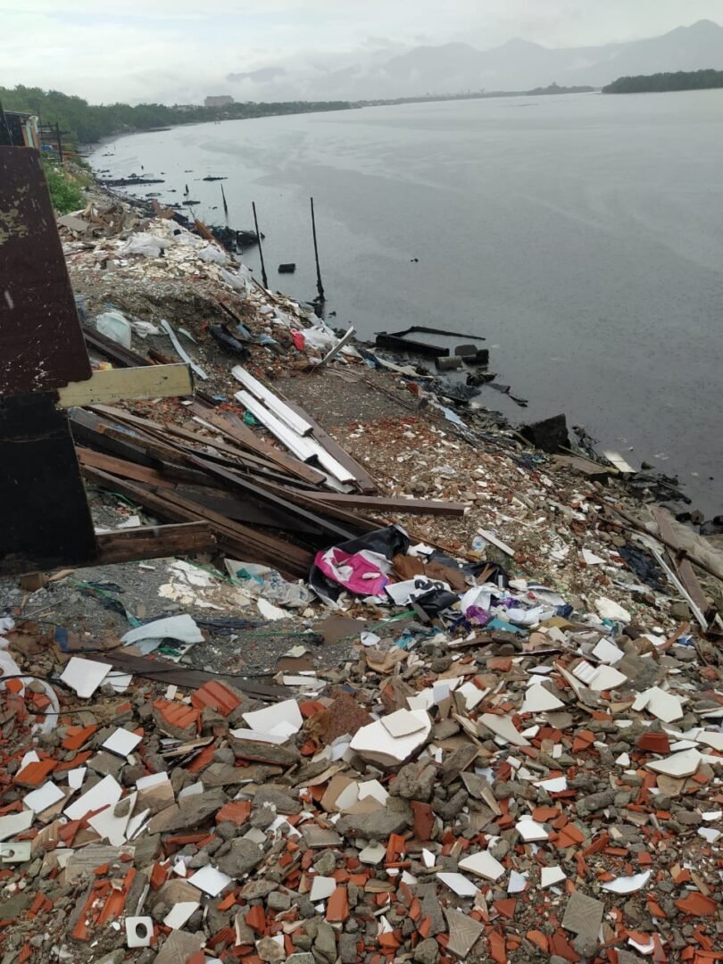 No mesmo local foi encontrado também, aterro em um terreno de aproximadamente 9m x 4m, 0,0036ha. No local tem uma construção em alvenaria e madeira coberta com telhas de fibrocimento em área com vegetação nativa de manguezal.