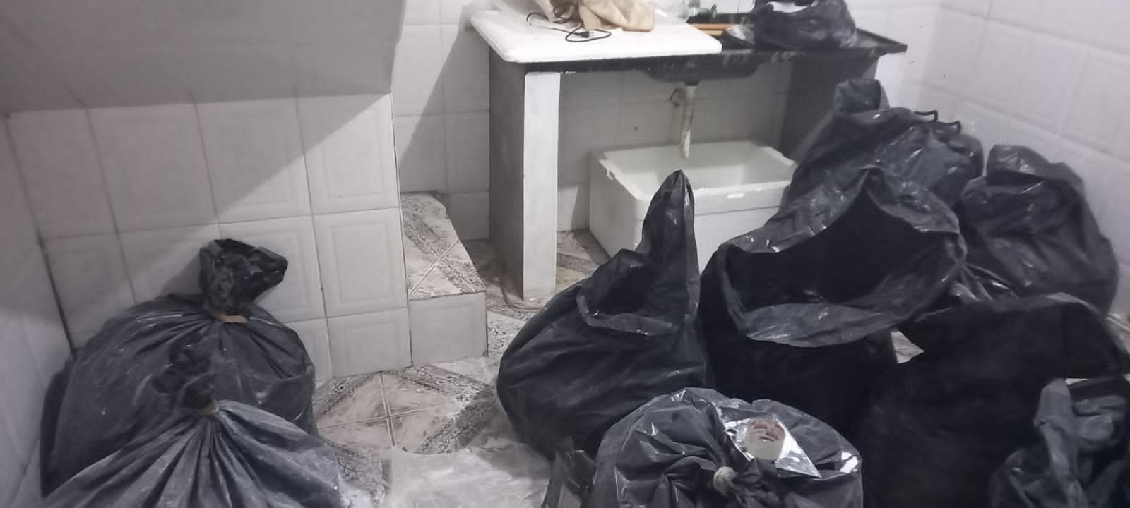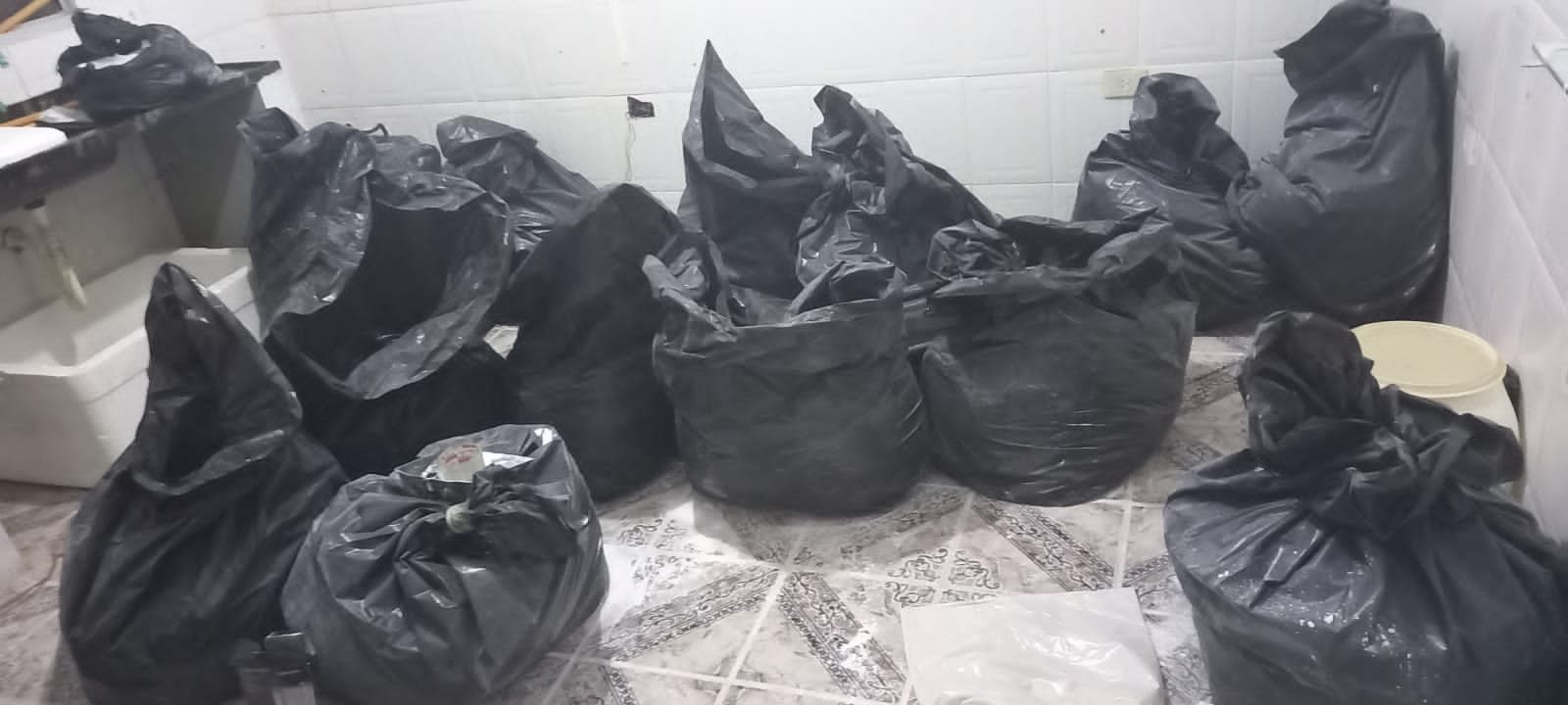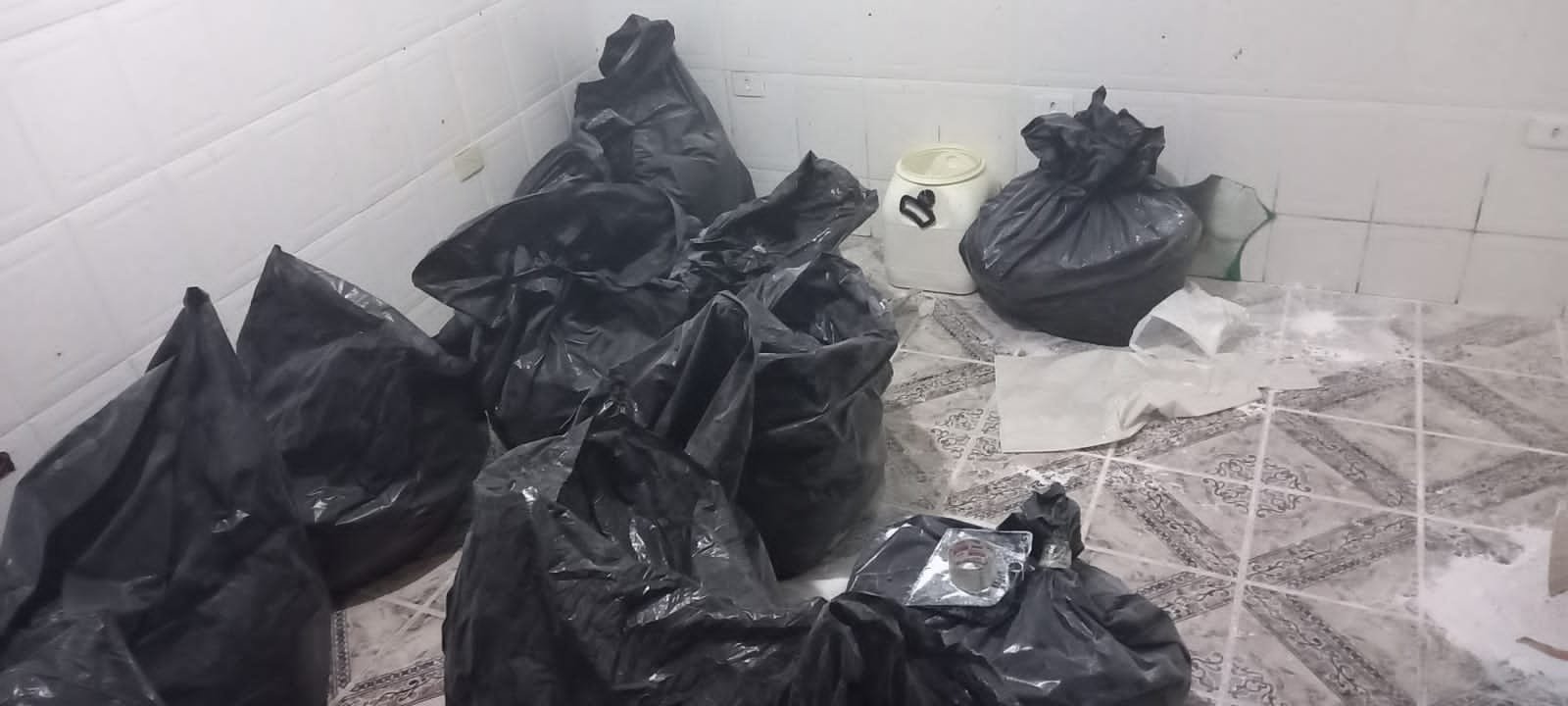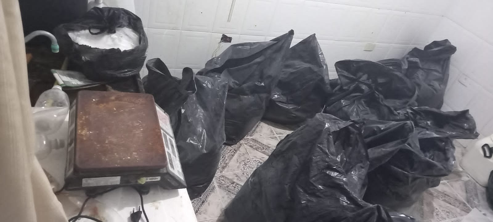 Próximo ao local, sentiram forte odor de outra residência, também desocupada, onde foram localizados aproximadamente 350 Kg de pasta base para o preparo da cocaína, juntamente com diversos objetos utilizados para o refino da droga.