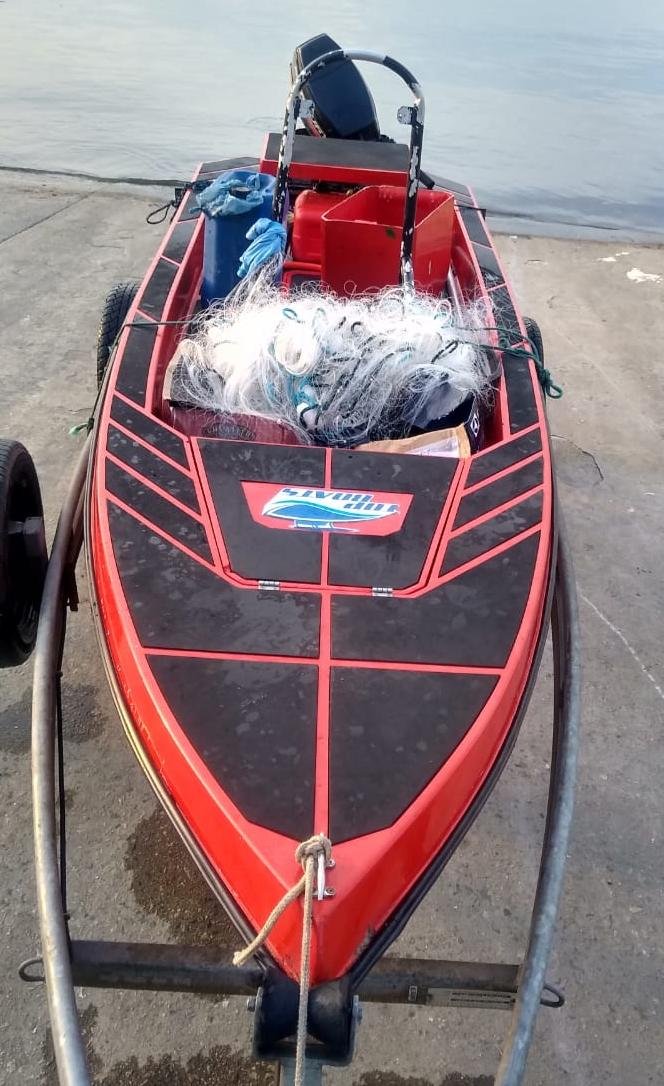 Após a abordagem, busca pessoal, pesquisas e vistoria na embarcação, foram localizadas 24 garrafas de Wisk, 22 cartões de telefonia celular, já habilitados e R$250,00 dólares. Todos os produtos estavam escondidos em uma grande rede de pesca, na intenção de ludibriar a fiscalização, porém, sem êxito aos olhos atentos dos Militares.
