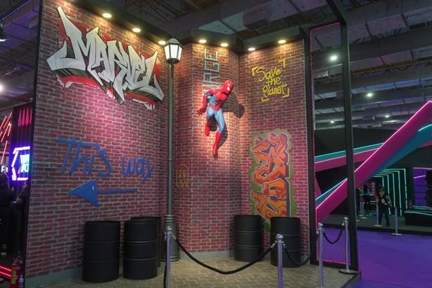 O estande conta com 300m² e apresenta ambientes temáticos com photo opportunities do Homem-Aranha, em comemoração aos 60 anos desde sua primeira aparição oficial; Pantera Negra, em clima da estreia do filme “Pantera Negra: Wakanda Forever”; e Thor, com os icônicos Mjolnir e Tesseract.
