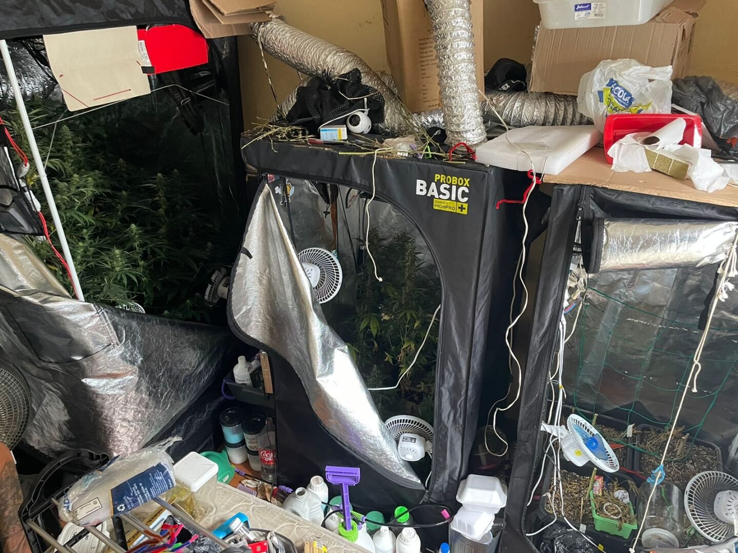 Em revistas pelo imóvel, os policiais encontraram 3 estufas contendo 18 “pés” de maconha em diversos tamanhos e estágios diferentes. No quarto, alguns potes de vidro contendo 601 gramas de Skunk, já colhidos e prontos para o consumo, também foram apreendidos.