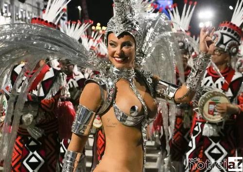 A atriz Paolla Oliveira não decepcionou os fãs neste domingo (19), ao desfilar pela 5ª vez como madrinha de bateria da Grande Rio e usou tapa sexo nos seios para evitar descuidos.