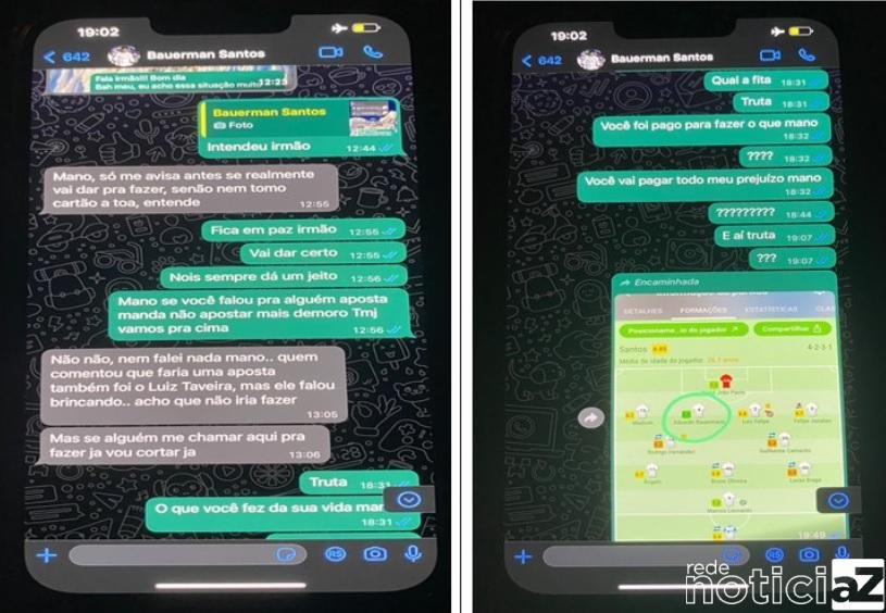 O Ministério Público de Goiás revelou novos desdobramentos da investigação do caso da manipulação de resultados em jogos do Campeonato Brasileiro de 2022. Um deles envolve o zagueiro do Santos Futebol Clube, Eduardo Bauermann, que teria recebido uma quantia de R$ 50 mil para tomar cartão. Uma conversa do jogador com o apostador foi revelada e divulgada.