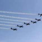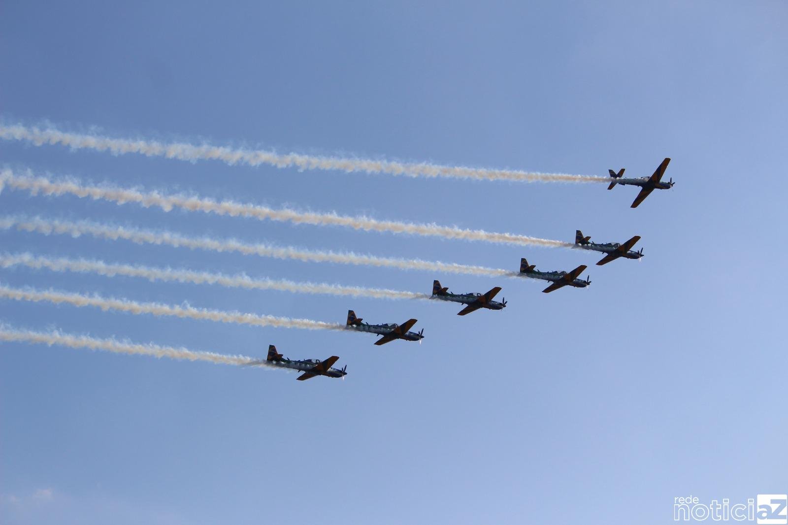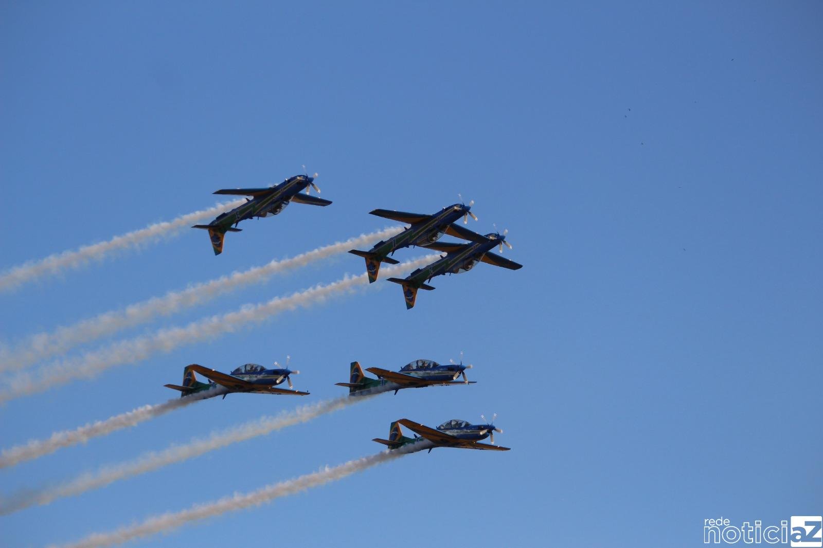 De acordo com as informações, com o lema “Fumaça Já”, as 7 aeronaves Embraer Super Tucano –29, exibiram uma performance impecável, com cruzamentos, inversões e formações bem conhecidas.