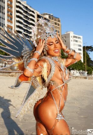 Rainha de bateria esbanja samba no pé e look ousado com 150 mil cristais boreais