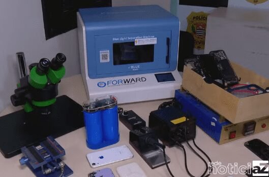 A investigação, que durou cerca de um ano, visava desmantelar quadrilhas envolvidas em roubo e receptação de aparelhos roubados. Durante o cumprimento de mandados de busca e apreensão, os policiais encontraram a máquina em um espaço identificado como “laboratório de desmonte de aparelhos”, onde também foram localizados 60 celulares roubados, sendo a maioria deles da marca iPhone.