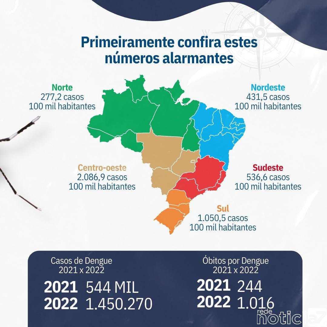O Brasil sofreu em 2022 o mais alto número de mortes pelo vírus da dengue já registradas, ultrapassando pela primeira vez a quantia de mil óbitos no período de 12 meses. Muitas cidades encontram-se em estado de alerta devido à epidemia.