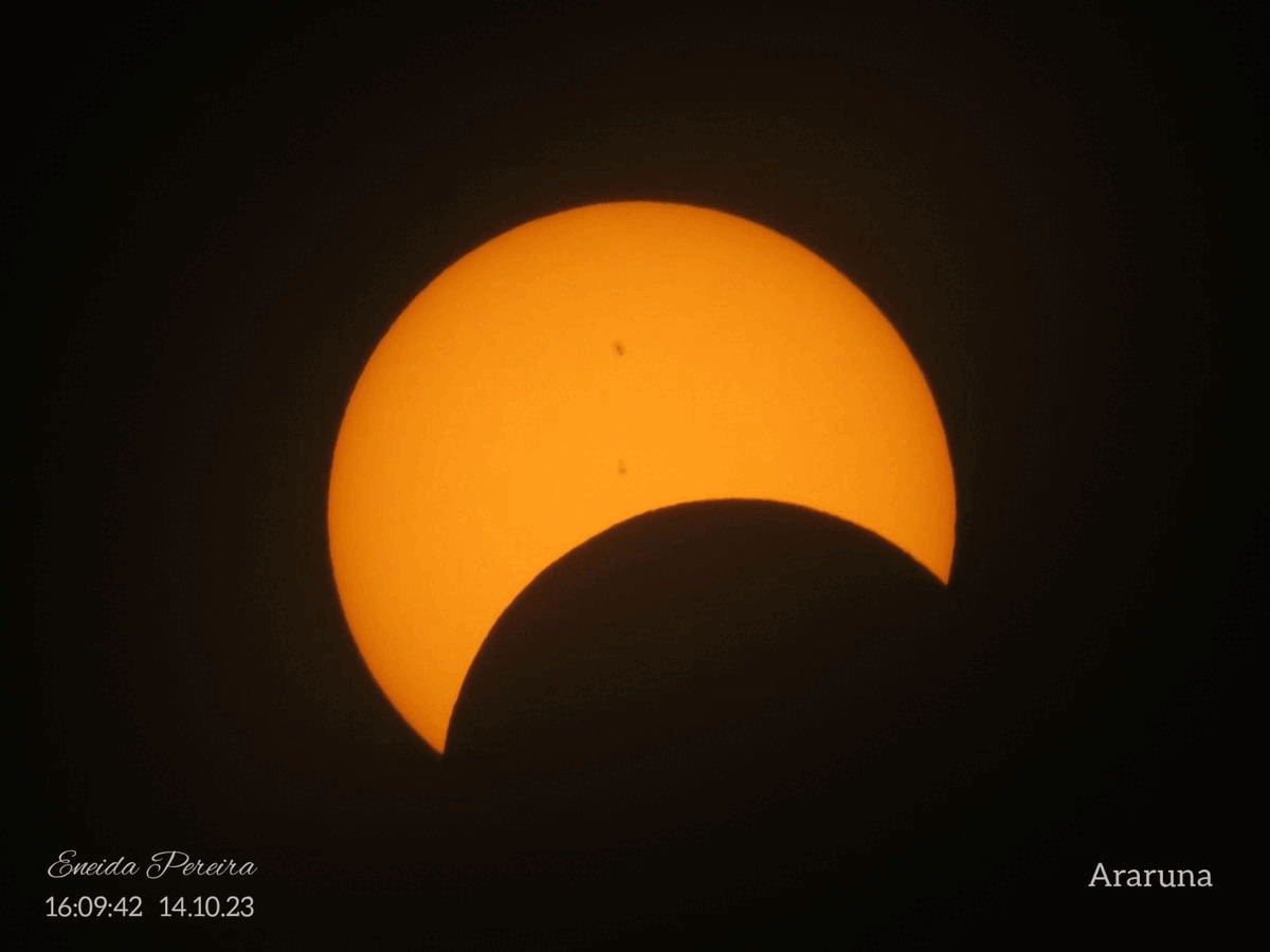 Ao olhar para o céu, o disco solar ficou quase todo coberto e escuro, apenas com uma borda fina luminosa à vista, lembrando um anel.