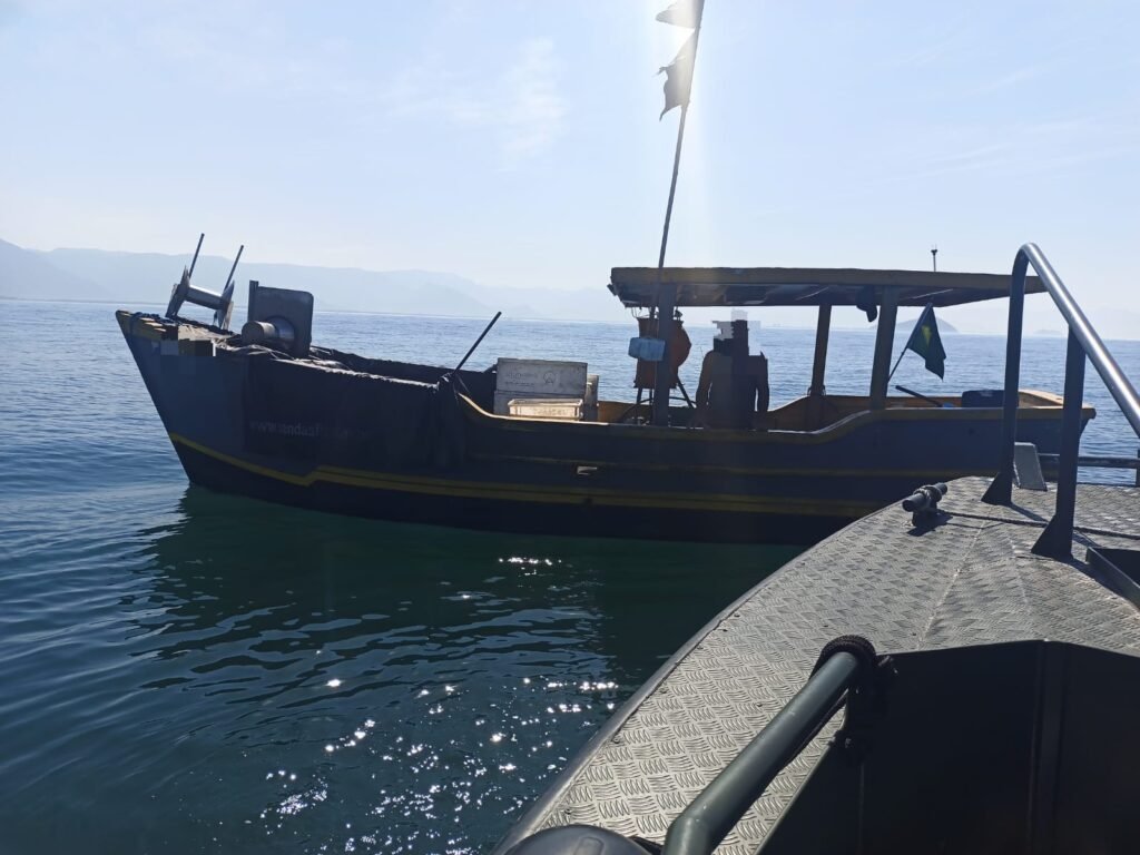 Ao se aproximarem, constataram a embarcação pesqueira em plena atividade de pesca na modalidade arrasto de camarão, espécie que encontra-se em seu período de proteção por lei, o Defeso.