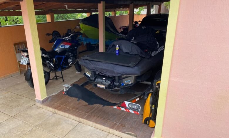 Enfim, no local foram apreendidos, um SUV Range Rover Evoque, uma moto BMW 1200, um jet ski e um quadriciclo.