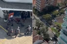 Criminosos invadiram um condomínio de luxo na cidade de Santos na manhã desta terça-feira (1) e fizeram reféns. Um dos homens foi baleado ao tentar fugir da Polícia.
