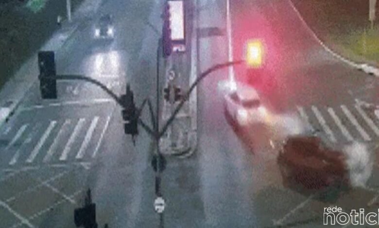O acidente, registrado por câmeras de segurança, mostra o momento em que o Jaguar branco ignora o semáforo vermelho e atinge o Kwid laranja, que cruzava a avenida. Com o impacto, o Kwid rodou várias vezes na pista, enquanto o Jaguar capotou, invadiu a pista contrária e atingiu a fachada de um clube.