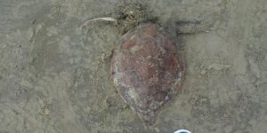 Além de três carcaças de tartarugas-verdes (Chelonia Mydas), sendo duas na Praia do Perequê e uma na Praia Branca; e um filhote de tartaruga-cabeçuda (Caretta caretta) com vida, na Praia do Iporanga.
