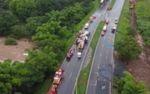 De acordo com a Triunfo Concebra, concessionária responsável pelo trecho, os veículos foram desviar de uma cratera que se abriu na rodovia e ao todo, 46 pessoas foram envolvidas no acidente:
