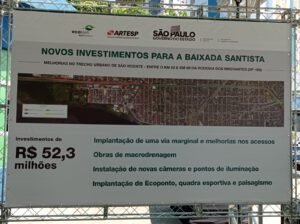 O principal investimento anunciado é sobre a modernização de todo o trecho urbano da Rodovia dos Imigrantes, que está em São Vicente, entre os quilômetros 62 e 69. Serão R$ 52,3 milhões em obras que já começaram e as intervenções serão a implantações de vias marginais, novos acessos para quem vive na região da Cidade Náutica e Tancredo Neves, construção de quadras poliesportivas, além de iluminação e instalação de câmeras. Além disso, serão feitos serviços de drenagens, com as construções de canais.